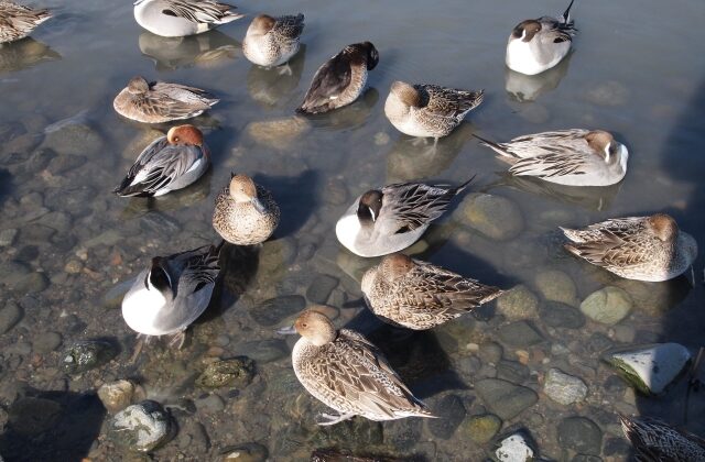 たくさんのカモが、